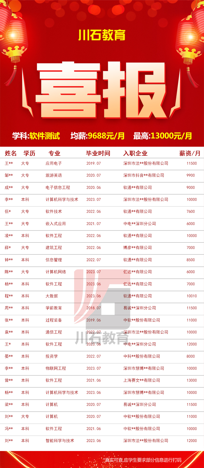 春暖花开,捷报频传!金三银四川石教育软件测试学科就业喜报出炉啦,话不多说,先一睹为快!
