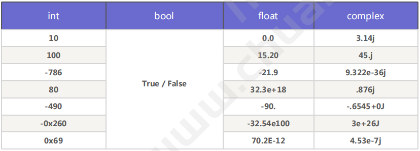 complex(复数,由实数部分和虚数部分构成,可以用a + bj,或者complex(a,b)表示, 复数的实部a和虚部b都是浮点型)
